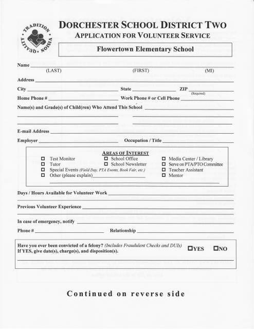 Please have a completed volunteer application on file at the school and complete a volunteer orientation before beginning your volunteer service.